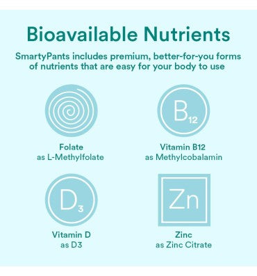 • Better Nutrient Sources: We include bioavailable forms of high-quality nutrients that are easy for your body to absorb like folate as methylfolate, vitamin D as D3, vitamin B12 as methylcobalamin, and zinc citrate