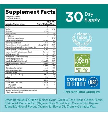 • Premium, Science-Backed Prenatal Gummy Multivitamin: SmartyPants Prenatal Multi & Omegas contains more nutrients than the leading prenatal multi gummy and is specifically formulated to fill nutritional gaps in the average diet (Based on $ Sales, IRI InfoScan, and MULO, 05/2022-05/2023)