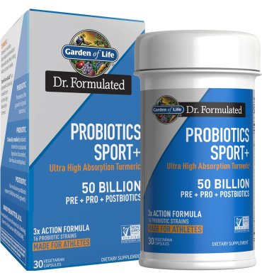 Garden of Life Probióticos, Prebióticos y Postbióticos diseñados para Deportistas, producto para para mujeres y hombres Atletas, adicionados con Curcumina de Cúrcuma, 50 billones