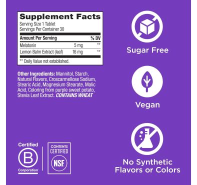 Fácil de tomar: Adultos, tomar una tableta 30 minutos antes de acostarse. La tableta se disuelve rápidamente en la boca, no necesita agua. 30 comprimidos por botella.