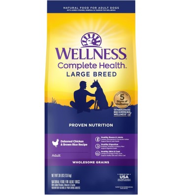 Wellness Complete Health Large Breed Adult Dry Dog Food, No Corn or Wheat, Made in USA with Real Meat, Natural Ingredients, Glucosamine, Probiotics & Omega Fatty Acids (30-Pound Bag)