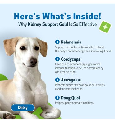 - ✅ Vitalidad. Hierbas científicamente investigadas probadas por nuestros veterinarios holísticos. Las hierbas de Kidney Support Gold se utilizan en la medicina tradicional asiática para apoyar la vitalidad y el bienestar general.