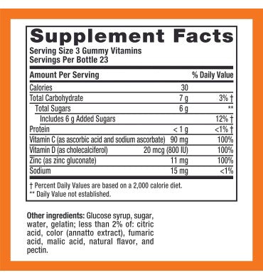 - Apoyo inmunitario diario*: ¡Cada porción de estas gomitas fáciles de tomar le da a tu sistema inmunológico el apoyo que necesita para tomar el día! *