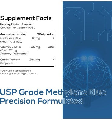 - Long-Lasting Supply: With 120 methylene blue pharmaceutical grade capsules per bottle, enjoy a generous 2-month supply. This ensures you have consistent access to the benefits of methylene blue without frequent reordering.