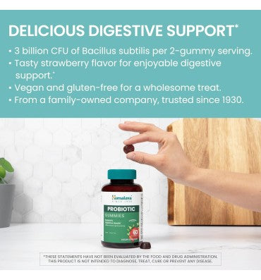 Himalaya Probiotic Gummies, Strawberry Flavor, Supports Digestive Health, Vegan, Gluten-Free, 60 Count