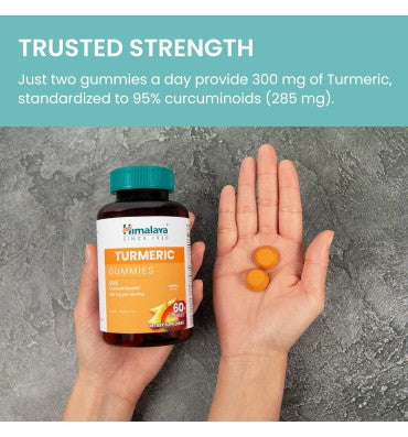 - SWEET TURMERIC TRADITION: Enjoy a sweet taste of wellness with Himalaya Turmeric Gummies. Each serving delivers 285 mg of Turmeric extract, standardized to contain 95% curcuminoids, known for their potential to support joint health and overall wellness.*
