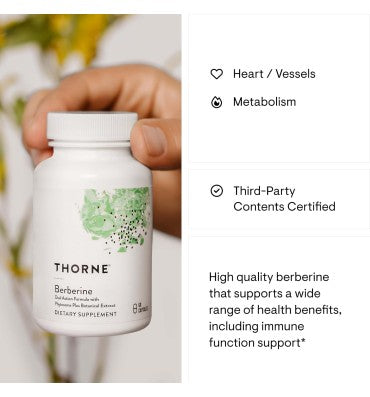 Berberine is a well-researched botanical with a long history of use in traditional Ayurvedic and Chinese herbal practices. Thorne’s high-quality berberine products contain the most researched form – berberine HCl – alongside the highly absorbable berberine phytosome, thus offering a wide range of health and wellness benefits.