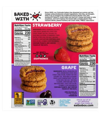 Bobo's PB&Js Oat Sandwich Bar, Variety Pack, 2.1 oz, 20-count