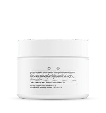 CollagenVET es el suplemento de salud animal de vanguardia de ThorneVet formulado con péptidos de colágeno para mejorar la salud y el bienestar de su mascota.