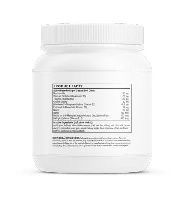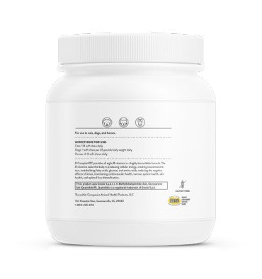 Los animales que han estado enfermos o que tienen poco apetito también pueden necesitar suplementos adicionales de vitamina B. B ComplexVET de ThorneVET contiene todo el complejo B en una fórmula con una biodisponibilidad óptima. B