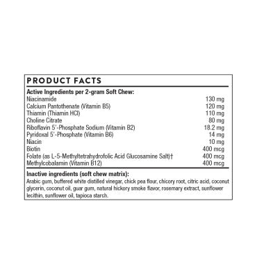 Aunque cada vitamina B es químicamente distinta, a menudo actúan sinérgicamente en diversas funciones bioquímicas, desde la producción de energía celular hasta la formación saludable de glóbulos rojos y la función neurológica saludable.