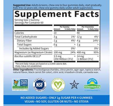 - Apoyo digestivo que toda la familia amará: cuatro de nuestras gomitas con sabor a frambuesa ofrecen prebióticos y 1 mil millones de CFU de probióticos clínicamente estudiados para apoyo digestivo, con solo 0.04 oz de azúcar de fruta (sin azúcares añadidos ni estevia)