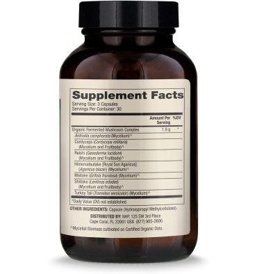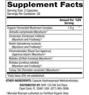 - Dr. Mercola El complejo de hongos fermentados contiene una mezcla de siete especies de micelio de hongos altamente valorados que proporcionan una variedad de enzimas, nutrientes, antioxidantes y compuestos de apoyo inmunológico.