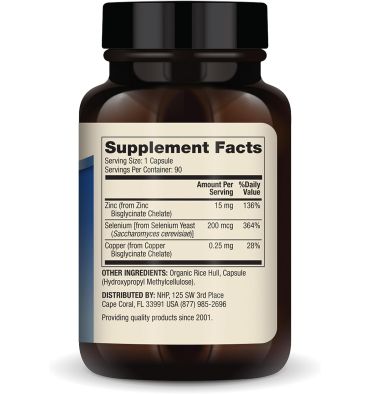 - Debido a que complementar con cualquier tipo de zinc puede reducir tu cobre, un micronutriente importante, hemos añadido una cantidad muy pequeña de cobre a nuestro selenio Zinc Plus