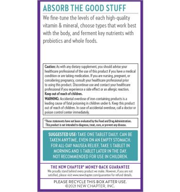 New Chapter, One Daily Prenatal Multivitamin, tabletas veganas