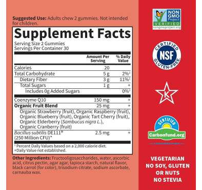 - TASTY TOUST: ¡Finalmente! Una gomita para la salud del corazón que sabe muy bien y está libre de azúcares añadidos; nuestras gomitas están bombeadas con una mezcla de frutas orgánicas para un sabor afrutado fácil de tragar; tan deliciosas que nunca sabrás que solo hay 0.04 onzas de azúcar por porción