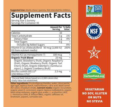 - Nutrientes saludables: nuestras gomitas de apoyo óseo e inmunológico están hechas con vitaminas y minerales fermentados para una alta biodisponibilidad y una mejor absorción asegurando una entrega óptima de nutrientes; hemos añadido probióticos clínicamente estudiados para apoyo digestivo