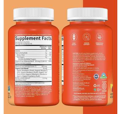 Vitamina D3 y K2, Salud Osea e Inmune. 45 gomitas