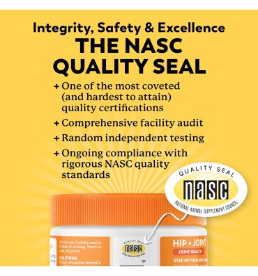 - NASC Quality Seal- Dr. Harvey's Hip and Joint Soft Chews have been reviewed by the National Animal Supplement Council (NASC), which ensures that they meet the highest quality standards. You can trust that you are giving your dog a safe and effective supplement that has been rigorously tested for quality and purity.