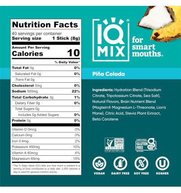 IQMIX combina electrolitos, magnesio, soporte cerebral, soporte del estado de ánimo, sodio y potasio en un suplemento todo en uno.