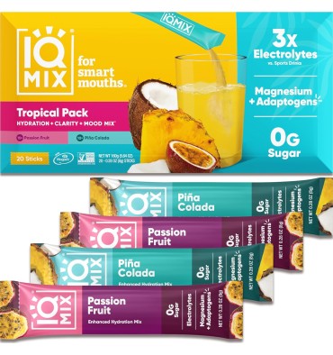 IQMIX Sugar Free Electrolytes Powder Packets - Hydration Supplement Drink Mix with Keto Electrolytes, Lions Mane, Magnesium L-Threonate, and Potassium Citrate