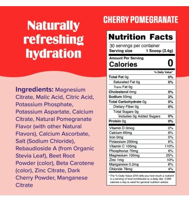 - Sabor natural sin azúcar: Añadir electrolitos en polvo proporciona una hidratación mejorada sin azúcar, carbohidratos y calorías. Naturalmente endulzado con hoja de estevia orgánica e infundido con sabores de frutas reales. Contiene minerales importantes como magnesio, calcio y potasio. Sabores y colores a base de plantas - Vegano, sin gluten, sin cafeína, sin soya/lácteos, apto para dieta cetogénica, paleo, sin OMG. No utilizamos edulcorantes artificiales como eritritol, sucralosa, sacarina o aspartame.