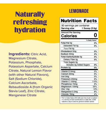Electrolitos Veganos Sin Azúcar, Sin Calorías, sabor Limonada.