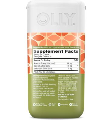 OLLY Adaptógeno focal, ginseng, gotu kola, suplemento de apoyo al estado de ánimo, cápsulas vegetarianas - 30ct