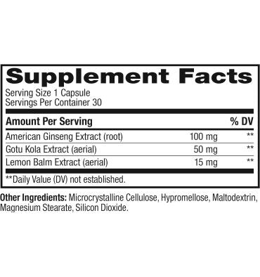 - GINSENG AMERICANO: Un extracto adaptogénico que ayuda a la mente a encontrar el enfoque y permanecer en la zona. Más bienes en el interior: Gotu Kola y Lemon Balm se han utilizado durante mucho tiempo para promover la concentración y la calma, enfocado y pensamiento libre de estrés. *