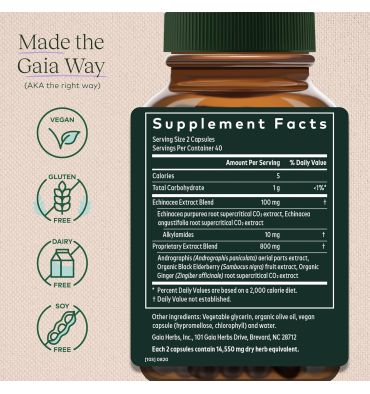- Pureza probada: el suplemento Quick Defense de Gaia Herbs es vegano, sin gluten y fabricado con orgullo en Carolina del Norte, EE. UU.