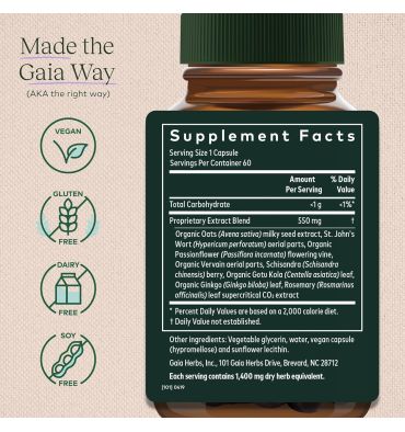- Pureza probada: Gaia Herbs Emotional Balance es vegano, sin gluten y fabricado con orgullo en Carolina del Norte, EE. UU.