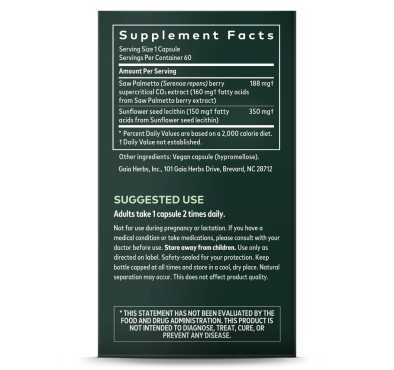 Gaia Herbs Saw Palmetto - Apoya la función saludable de la próstata para hombres - Contiene palma de sierra y lecitina de semillas de girasol para apoyar la salud de los hombres - 60 cápsulas líquidas veganas (suministro de 30 días)