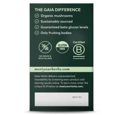 - Pureza probada: el hongo de cola de pavo de Gaia es vegano, orgánico, sin gluten y fabricado con orgullo en NC, EE. UU