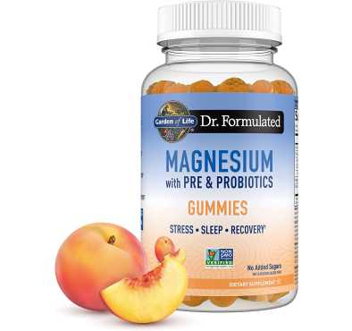 Garden of Life Gomitas de Magnesio para apoyar el Estrés con Prebióticos y Probióticos para dormir y recuperación sin azúcares añadidos, formuladas por el Dr. Veganas, Sin Gluten, Kosher y NON-OMG, 60 gomitas de Durazno.