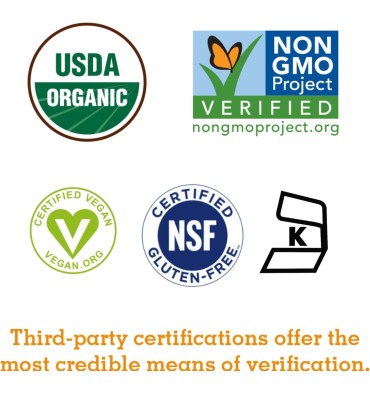 - Certificado de USDA Organic, verificado como Non-GMO Project, certificado NSF sin gluten, certificado vegano y Kosher
