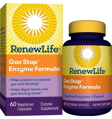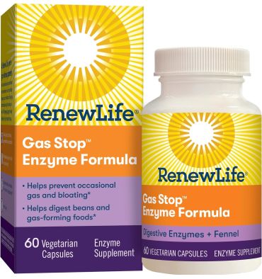 - Alivia los gases ocasionales: * Gas Stop es una potente mezcla de enzimas digestivas de Renew Life para ayudar a descomponer los alimentos formadores de gases para aliviar gases ocasionales, hinchazón y presión en adultos*