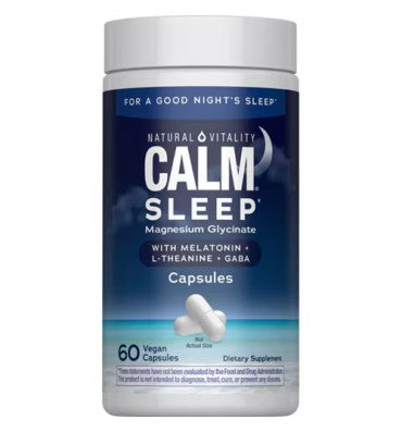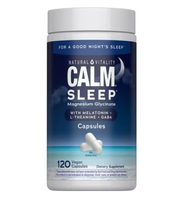 Natural Vitality Calm® Sleep Capsules were developed specifically for those times we need sleep support. They feature magnesium glycinate along with L-Theanine (a relaxing amino acid), GABA (a non-protein amino acid) and melatonin, which helps the body ease into a restful sleep. Magnesium glycinate helps replenish the body's magnesium levels and is known to be more absorbable and easier on the stomach than magnesium oxide.