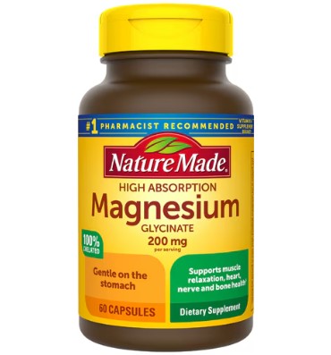 - Heart, nerve and bone support supplement: contains one 60 count bottle of Nature Made Magnesium Glycinate 200 mg per serving Capsules for a 30-day supply