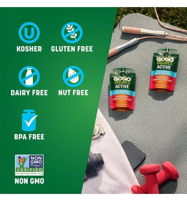 Keep the fun going with GoGo squeeZ Active Fruit Blend with Electrolytes, your fruit-powered sports snack for an active lifestyle. Convenient for on the go or on the move, these tasty snacks keep up with you and the whole squad. GoGo squeeZ Active is powered by real fruit, contains antioxidants Vitamin C, Vitamin A, and Vitamin E, and is made with electrolytes to help replenish those essential minerals lost through activity. Our pouches get their sweetness from the fruit inside—this means no sugar added*, no high fructose corn syrup, and no other added flavors or colors. And with a gluten free, nut free, and dairy free recipe, GoGo squeeZ Active Fruit Blend with Electrolytes is a sports snack you can feel great about. These fruit blend snacks are also Non-GMO Project Verified, kosher, and free of common allergens so you and your family can enjoy tasty snacks from GoGo squeeZ with ease. Stock up on this fruit-powered snack for the big game or a short hike today! *Not a Low Calorie Food. See Nutrition Information for Sugars and Calorie Content
