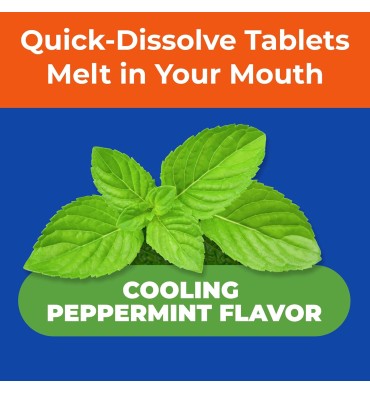 - Comprimidos disolventes convenientes: disfrute del sabor de menta refrescante y de gran sabor de las tabletas de disolución rápida mientras se derriten en la boca.