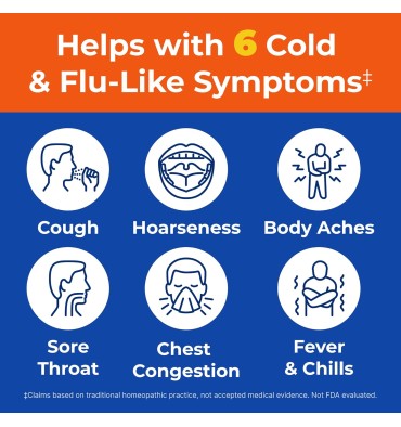 - Ayuda con 6 síntomas de resfriado y gripe: alivia temporalmente la tos, dolor de garganta, congestión en el pecho, ronquera, dolores corporales, fiebre y escalofríos. *