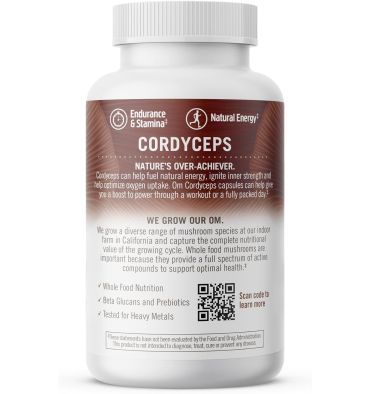 Apoya la vitalidad general y la resistencia: el suplemento de hongos Cordyceps de Om's apoya el consumo de oxígeno y la entrega para aumentar los niveles de energía