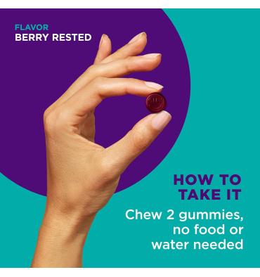 Cómo tomar: toma dos gomitas 30 minutos antes de acostarte. Mastica bien antes de tragar. 40 gomitas por botella (suministro de 20 días)