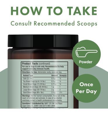 - Cada cuchara proporciona a tu mascota potentes beta glucanos, glucosamina y antioxidantes que ofrecen un apoyo multifacético para un sistema inmunológico vibrante y equilibrado y bienestar general