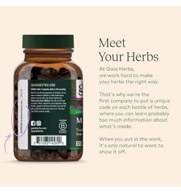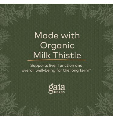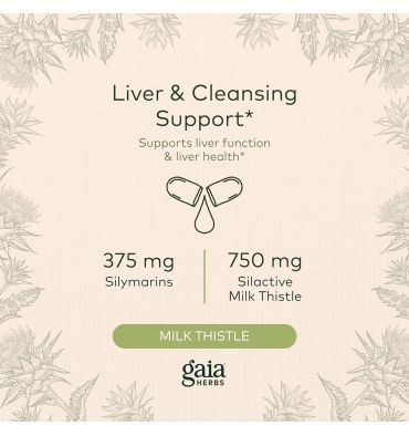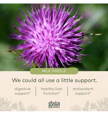 Los estudios múltiples sugieren que el cardo de leche apoya la función hepática. Las hierbas de Gaia concentran su extracto de la semilla del cardo de leche bajo temperatura baja y la presión baja para preservar la importante fitoquímica Silymarin. Este componente promueve la producción sana de células hepáticas y el metabolismo del colesterol en individuos con niveles de colesterol ya normales.