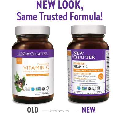 New Chapter Fermented Vitamin C + Elderberry, ONE Daily for Immune Support & Collagen Protection, Made with Organic Herbs, Certified Vegan, Gluten Free, 60 Count