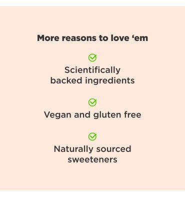 - DELICIOSAMENTE SABROSO: Una deliciosa explosión de sabores de granada y arándano, vegetariana, sin gluten. 20 masticables por botella.