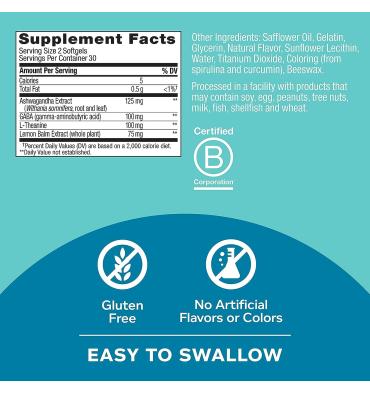 - Ultra suaves: nuestras mezclas de gel suave premium son de color natural, fáciles de tragar y tienen un toque de aroma a fresa con cero azúcar. Este suplemento de ayuda al estrés también viene en un práctico paquete compacto.