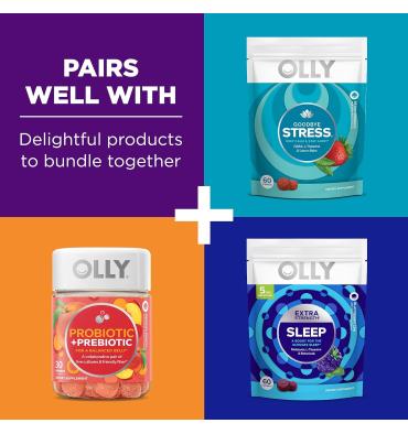 • Más bondad de OLLY: creamos productos que son tan eficaces como deliciosos y se pueden mezclar y combinar: gomitas, multivitaminas, cápsulas blandas de primera calidad y más formas de sentirse feliz al revés