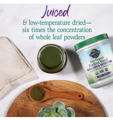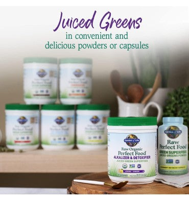 Garden of Life Raw Organic Perfect Food Alkalizer & Detoxifier Juiced Greens Superfood Powder - Lemon Ginger, 30 Servings - Non-GMO, Gluten Free Whole Food Dietary Supplement, Plus Probiotics